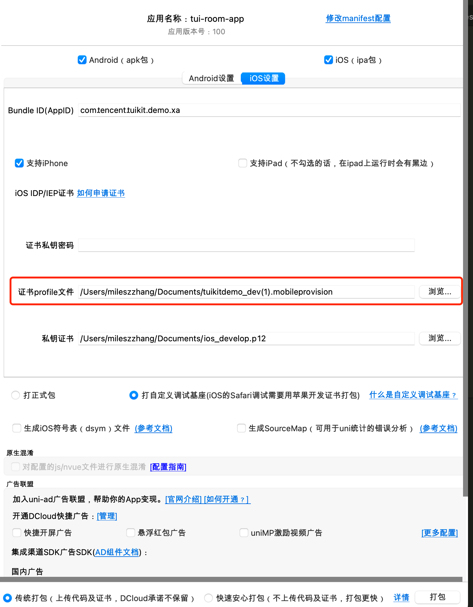 这里的证书文件,还是主 App 的 profile 文件,不是 Extension 的 profile 文件。