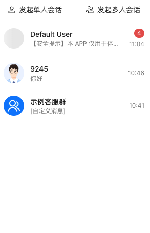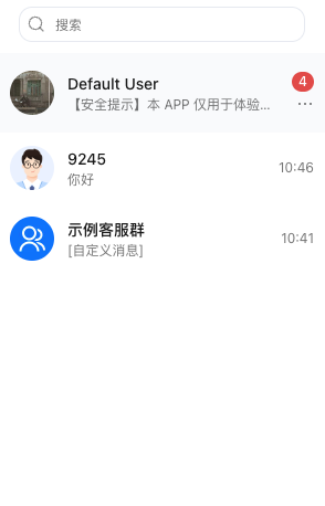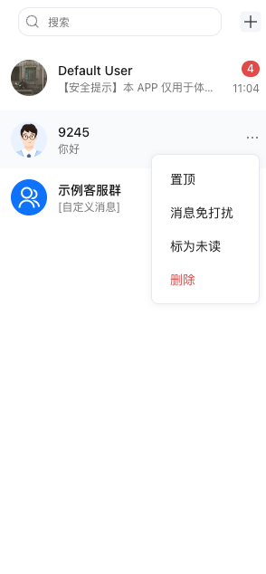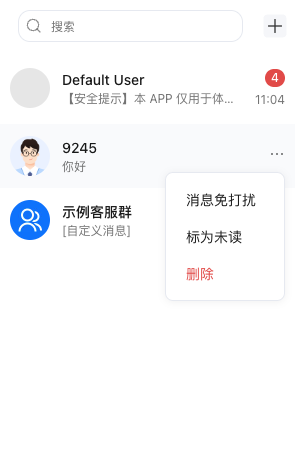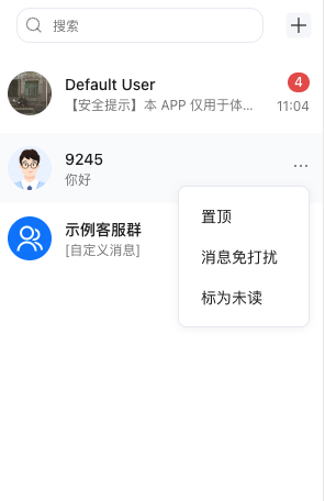 参数,您可以灵活地控制 ConversationList 中的搜索会话、创建会话和会话操作功能的显示。<ConversationList :enableSearch="false" />