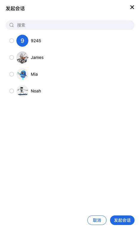 enableCreate | Boolean | true | 控制创建会话功能是否显示。 |