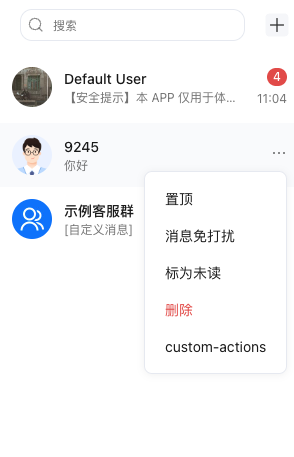 enableActions | Boolean | true | 控制会话操作功能是否显示。 |