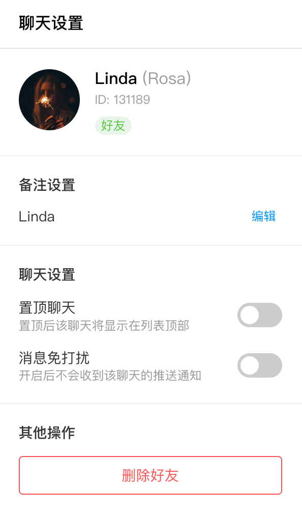 关闭免打扰。该方法会自动调用底层 API 并更新状态。setUserRemark