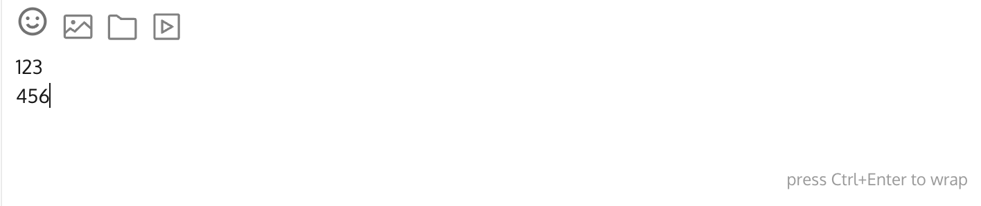 <template><MessageInput><template #footerToolbar><div style="padding: 4px 12px; font-size: 12px; color: #999; text-align: right;">press Ctrl+Enter to wrap</div></template></MessageInput></template>