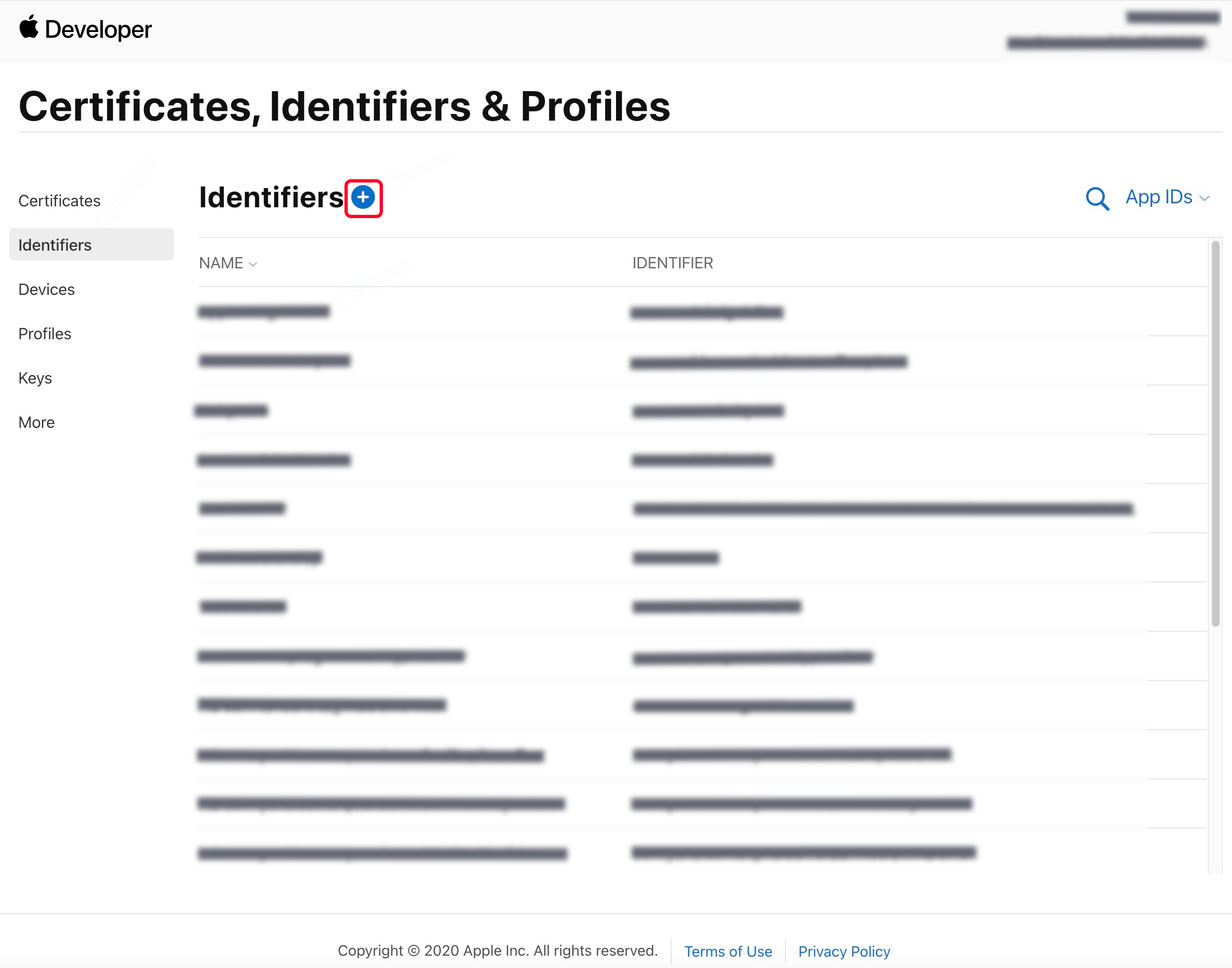 2. 单击 Identifiers 右侧的 +。