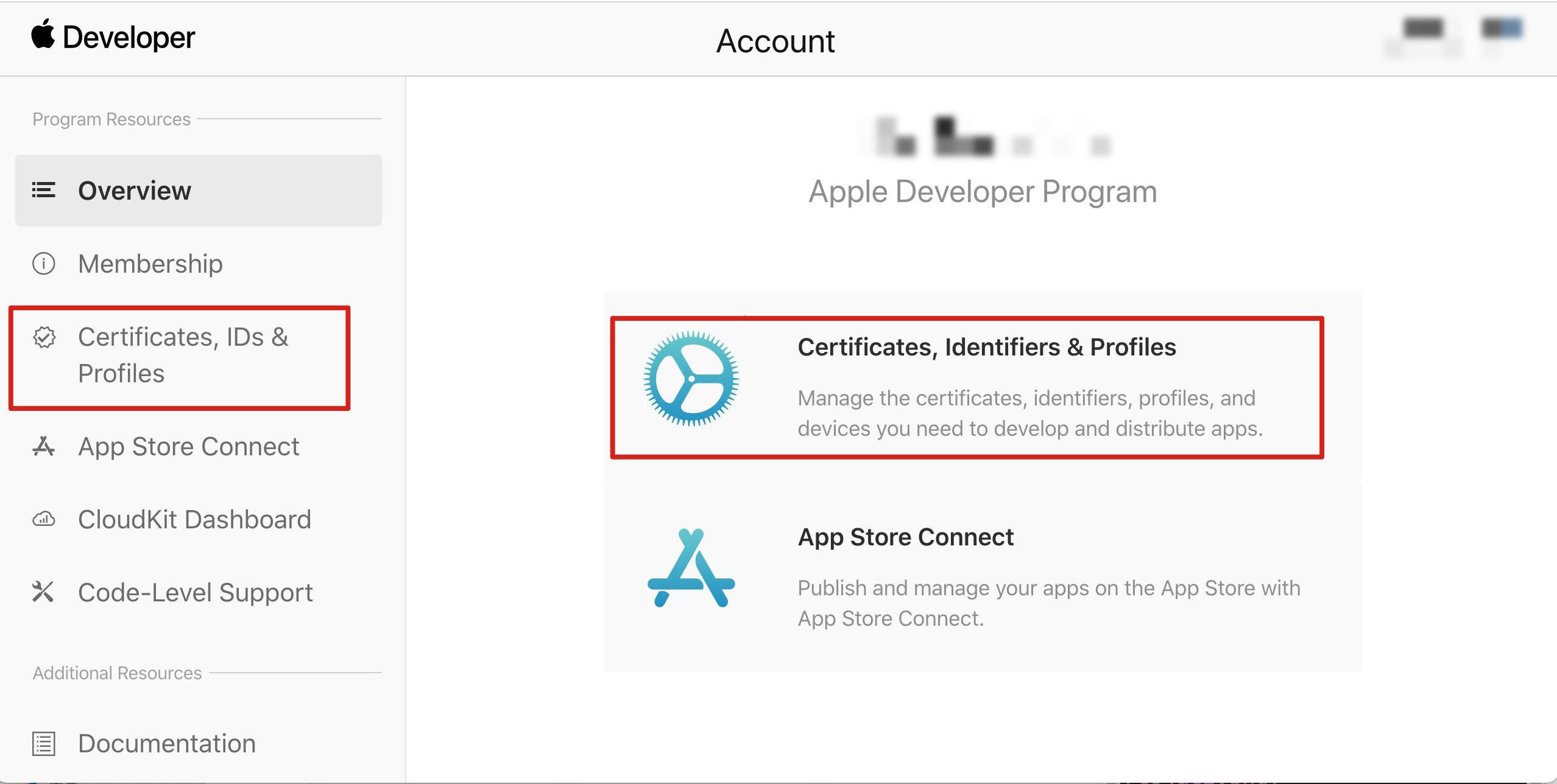 1. 登录 苹果开发者中心 网站,单击 Certificates,Identifiers & Profiles 或者侧栏的 Certificates,IDs & Profiles,进入 Certificates, IDS & Profiles 页面。