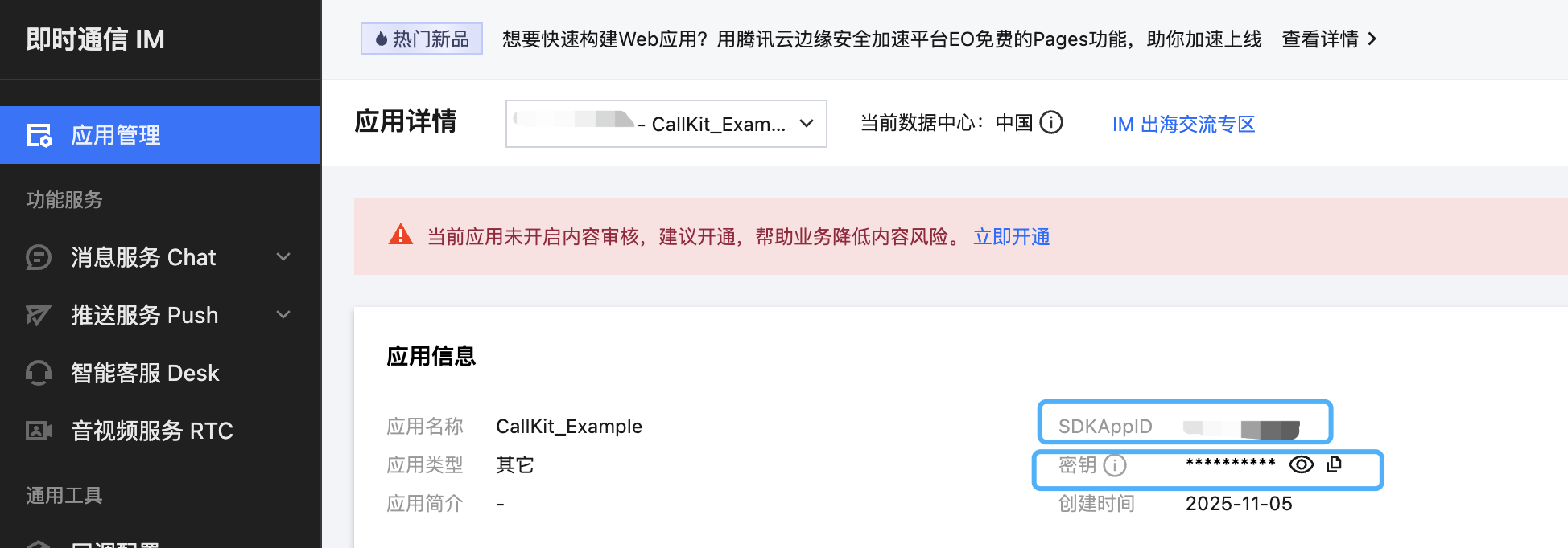 TUICallKit/ReactNative/src/debug/GenerateTestUserSig-es.js 文件,将开通服务时获取的 SDKAppID 和 SDKSecretKey 填入其中。