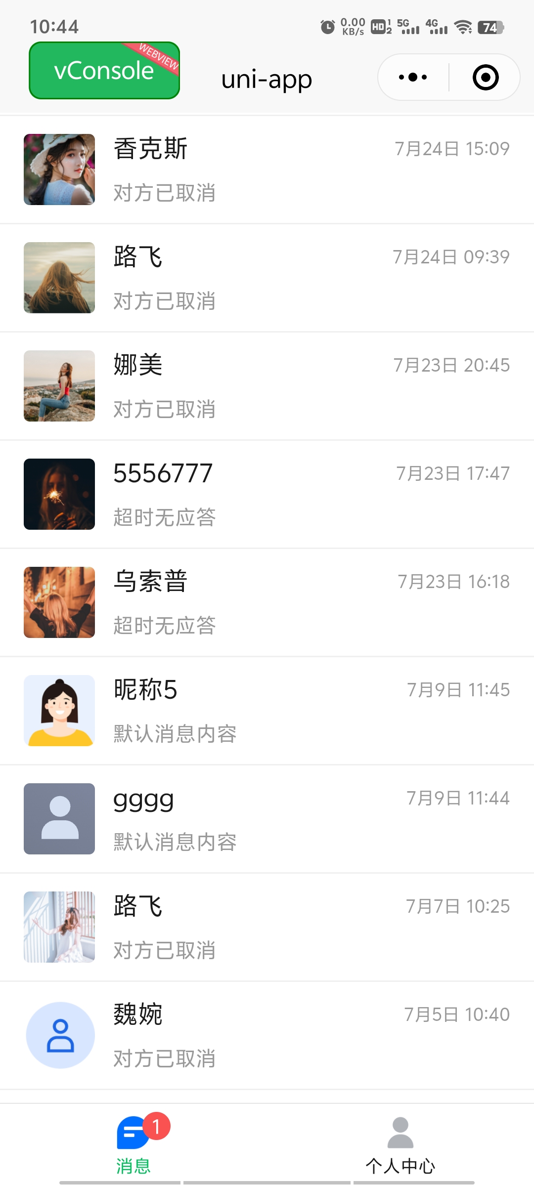 {"pages": [{"path": "pages/login/login","style": {"navigationBarTitleText": "uni-app"}},{"path": "pages/conversation/conversation","style": {"navigationBarTitleText": "uni-app"}},{"path": "pages/profile/profile","style": {"navigationBarTitleText": "uni-app"}},{"path": "pages/chat/chat","style": {"navigationBarTitleText": "uni-app"}}],"tabBar": {"list": [{"pagePath": "pages/conversation/conversation","text": "消息","badge": "{{totalUnRead > 99 ? '99+' : totalUnRead.toString()}}"},{"pagePath": "pages/profile/profile","text": "个人中心"}]},"globalStyle": {"navigationBarTextStyle": "black","navigationBarTitleText": "uni-app","navigationBarBackgroundColor": "#F8F8F8","backgroundColor": "#F8F8F8"},"uniIdRouter": {}}