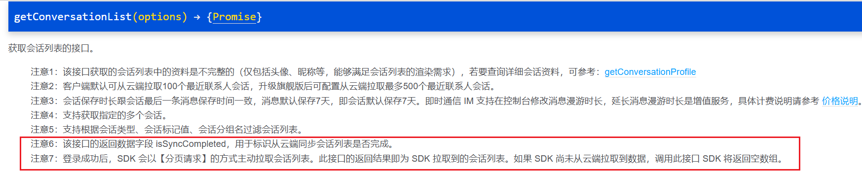 拉取数据一次(建议条数:100 条),等用户上滑至底部再拉取下一页会话列表数据。2. 之后有新增会话或会话更新时,上层通过 IM