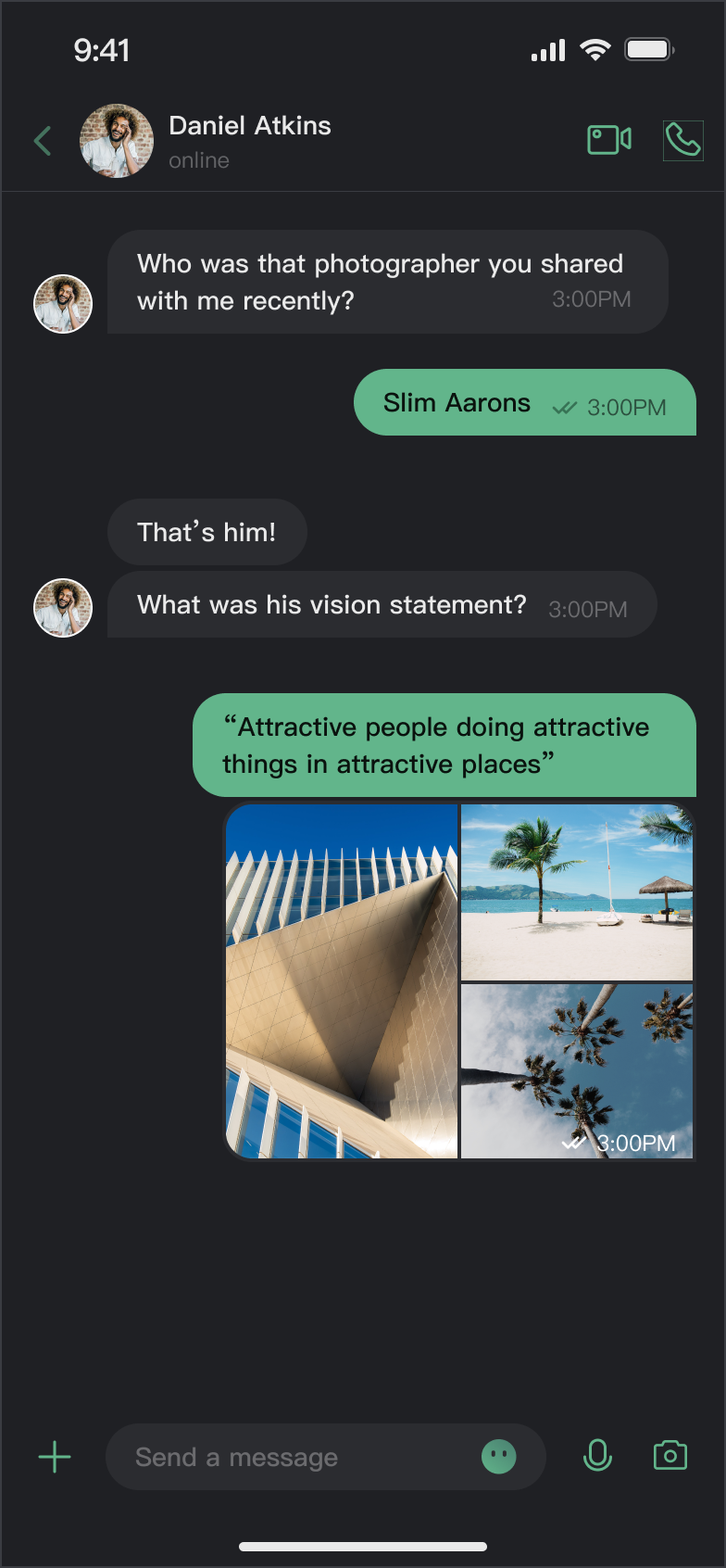 以消息列表为例,自定义主题模式和主题色的效果如下图所示: