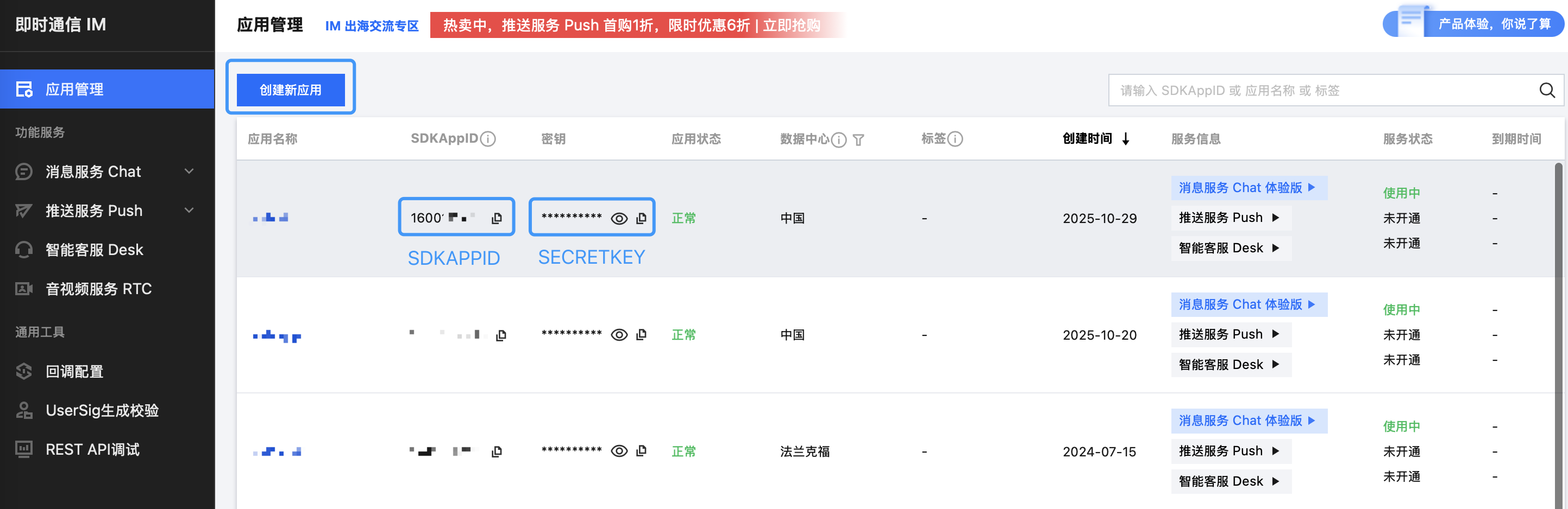 获取您自己的腾讯云即时通信 IM 应用的凭证信息,注册并登录 即时通信 IM 控制台,创建一个 IM 应用并获取应用的