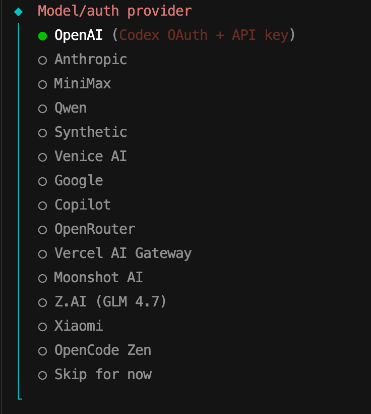 在出现的 Select channel 列表中,找到并选择 Tencent IM (plugin) 。 这一步是通知 OpenClaw 加载刚配置好的 timbot 模块。