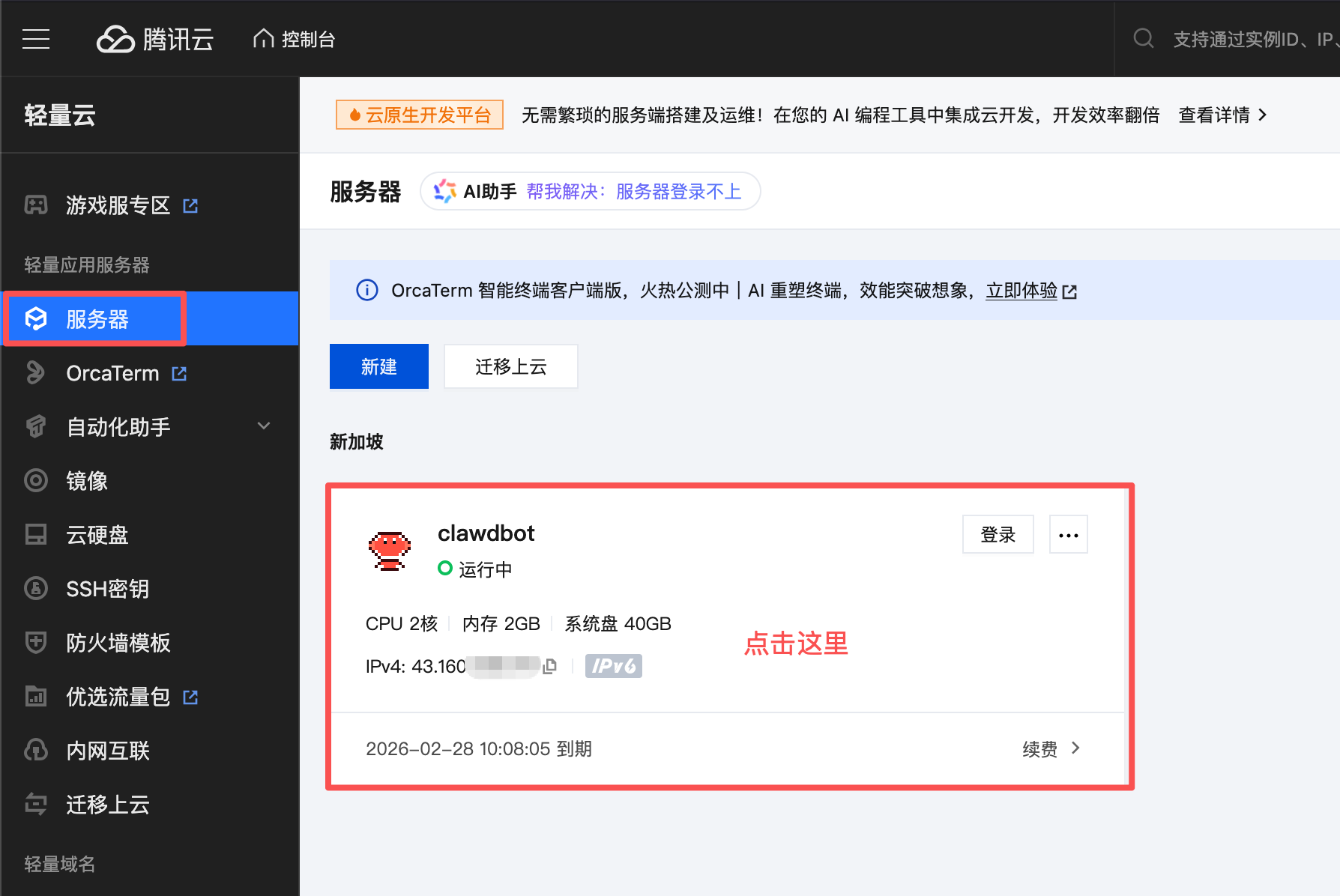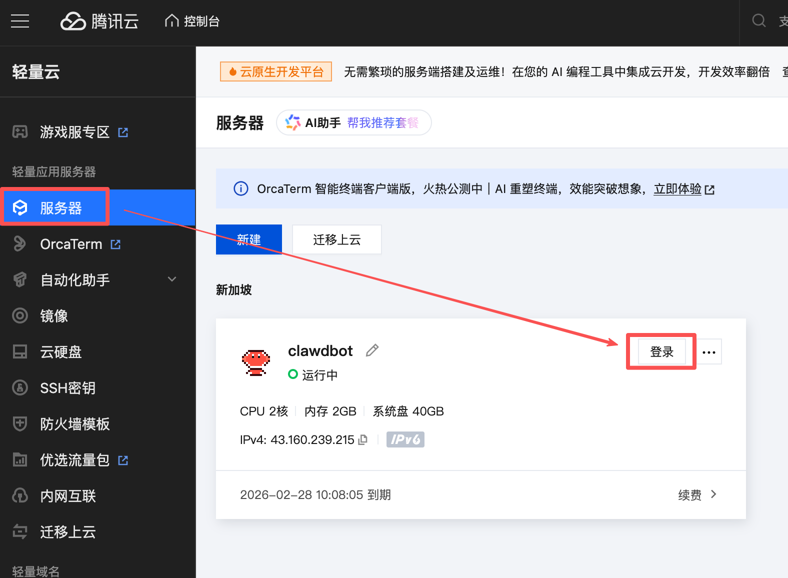 OpenClaw 环境:已在 腾讯云 Lighthouse 服务器上部署 OpenClaw,请参考 部署指南:新购一台 Lighthouse 服务器。