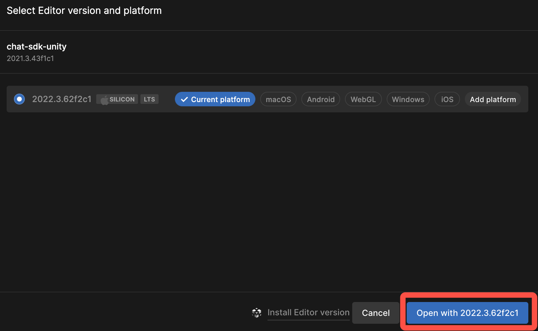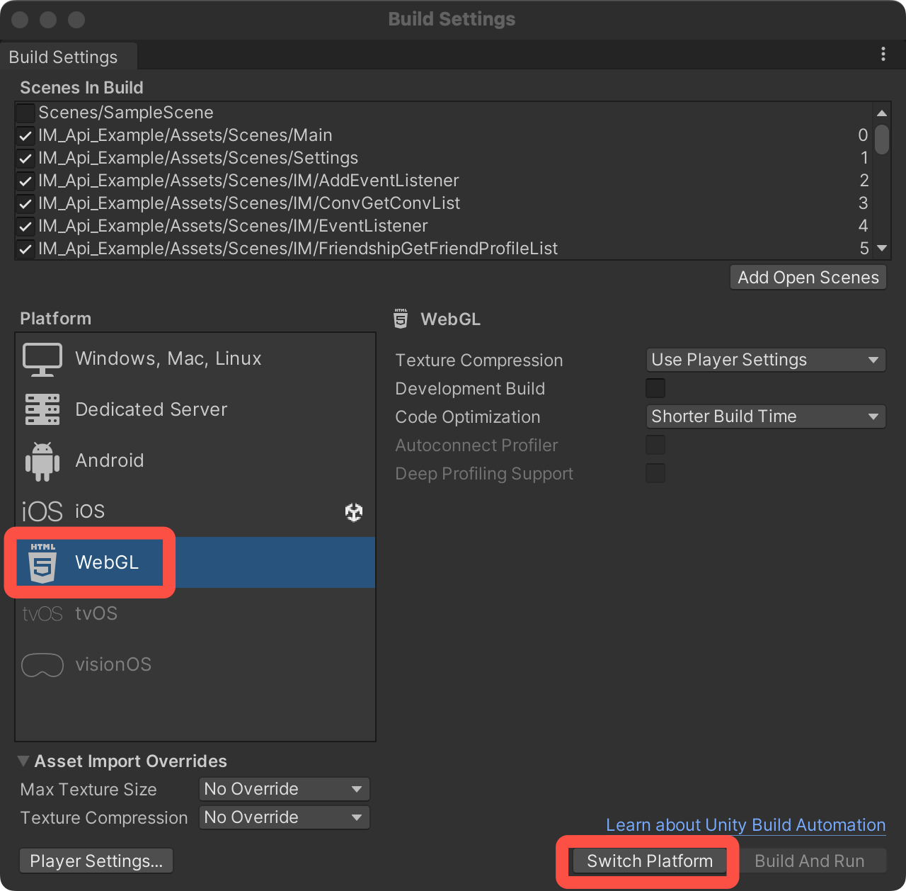 1. 切换到 WebGL 平台。