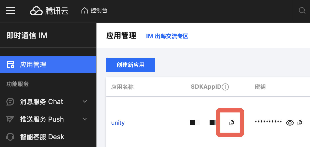 1. 复制 SDKAppID。