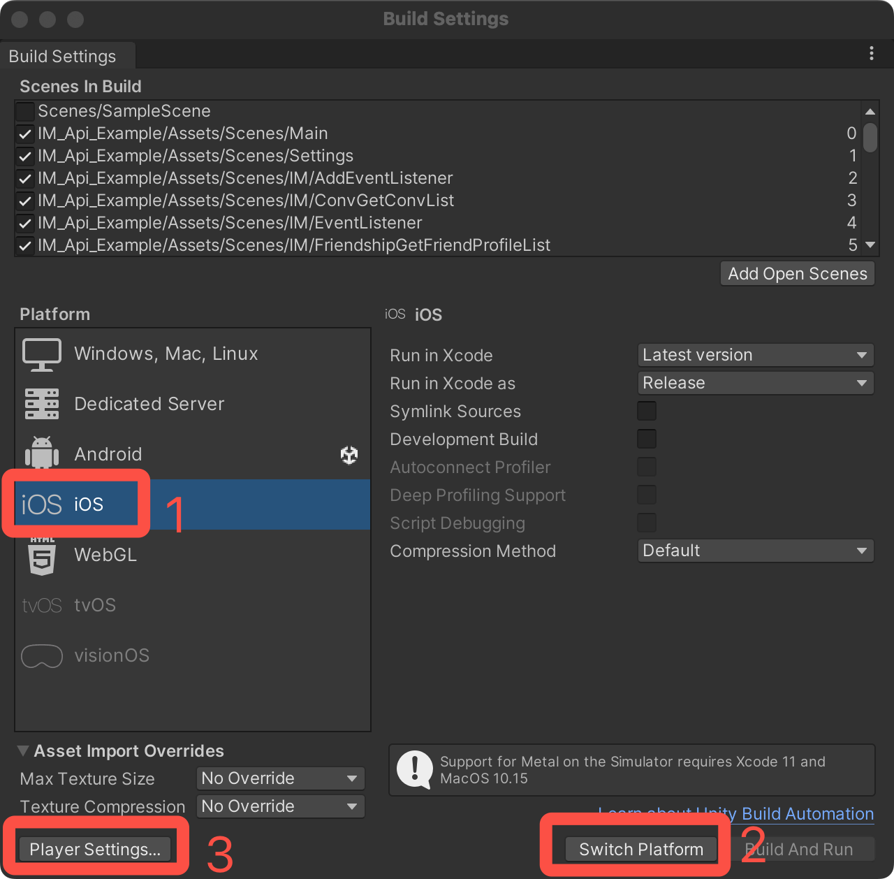 1. 切换到 iOS 平台。