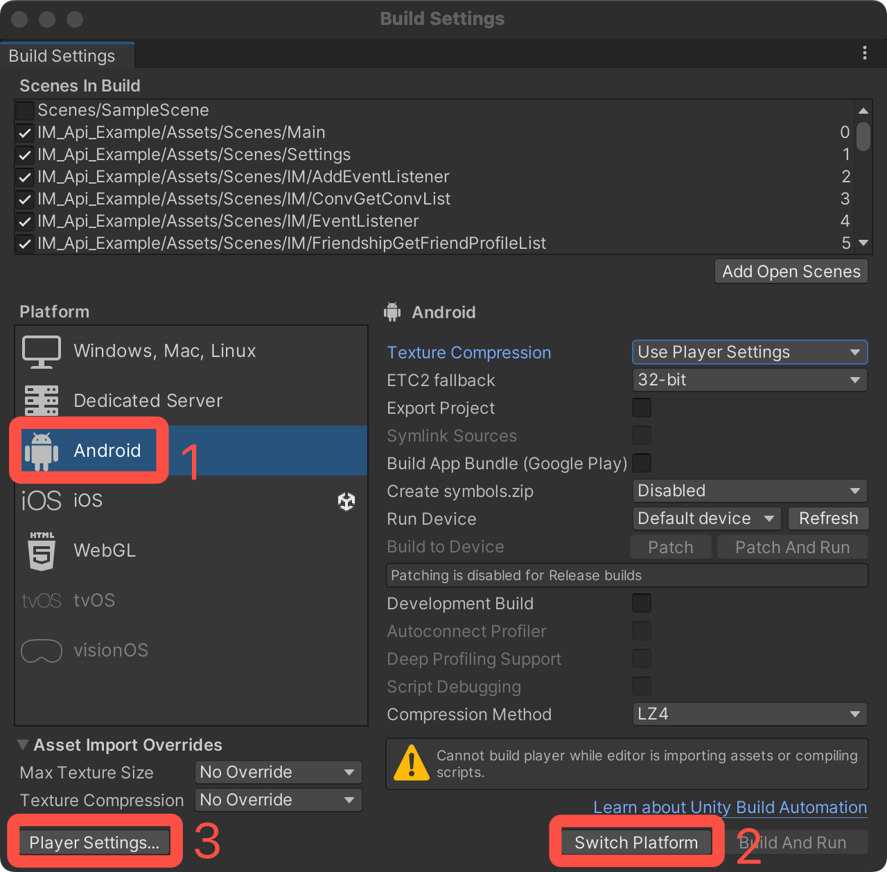 1. 切换到 Android 平台。