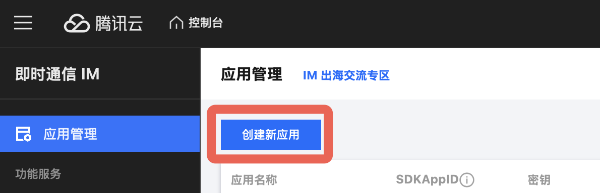 单个腾讯云账号最多可创建 300 个应用。若已有 300 个应用,您可以先 停用并删除 不再使用的应用后,再创建新的应用。应用删除后,该 SDKAppID 对应的所有数据和服务不可恢复,请谨慎操作。