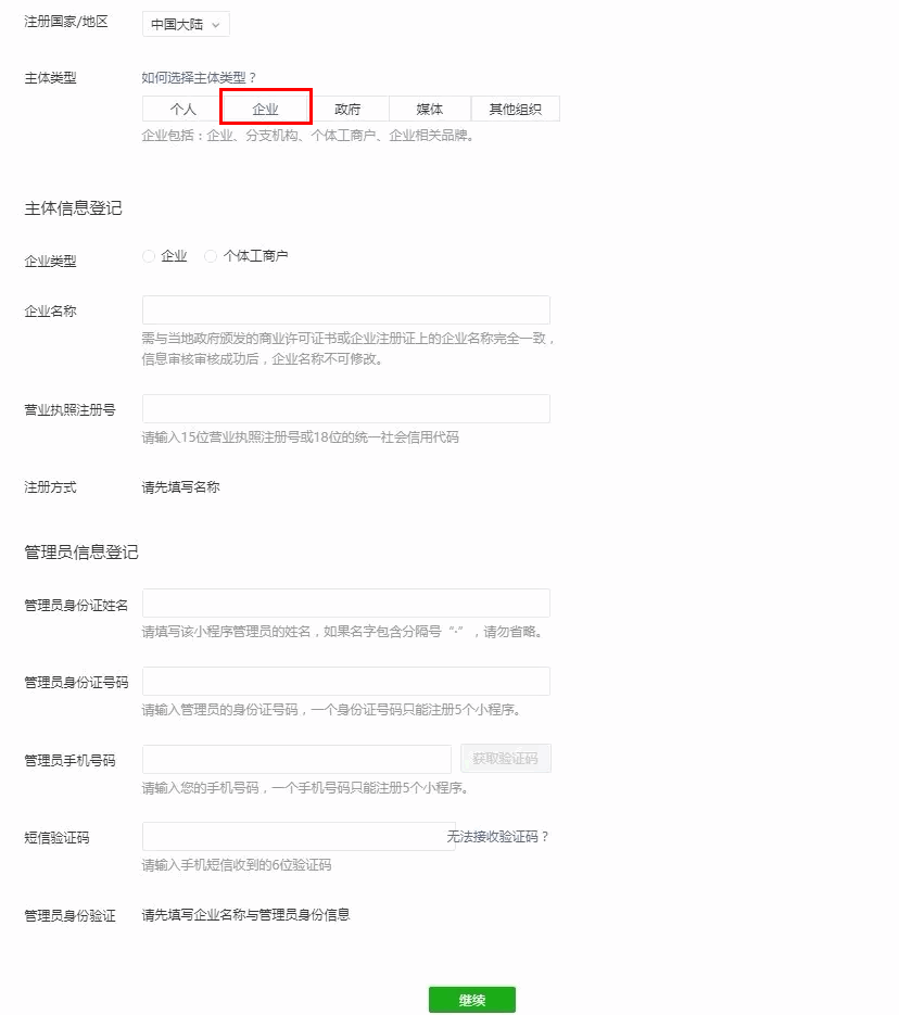 小程序推拉流标签不支持个人小程序,只支持企业类小程序。需要在 注册 时填写主体类型为企业,如下图所示: