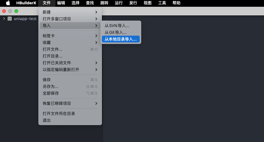 1. 打开 HBuilderX,选择 文件 > 导入 > 从本地目录导入,导入