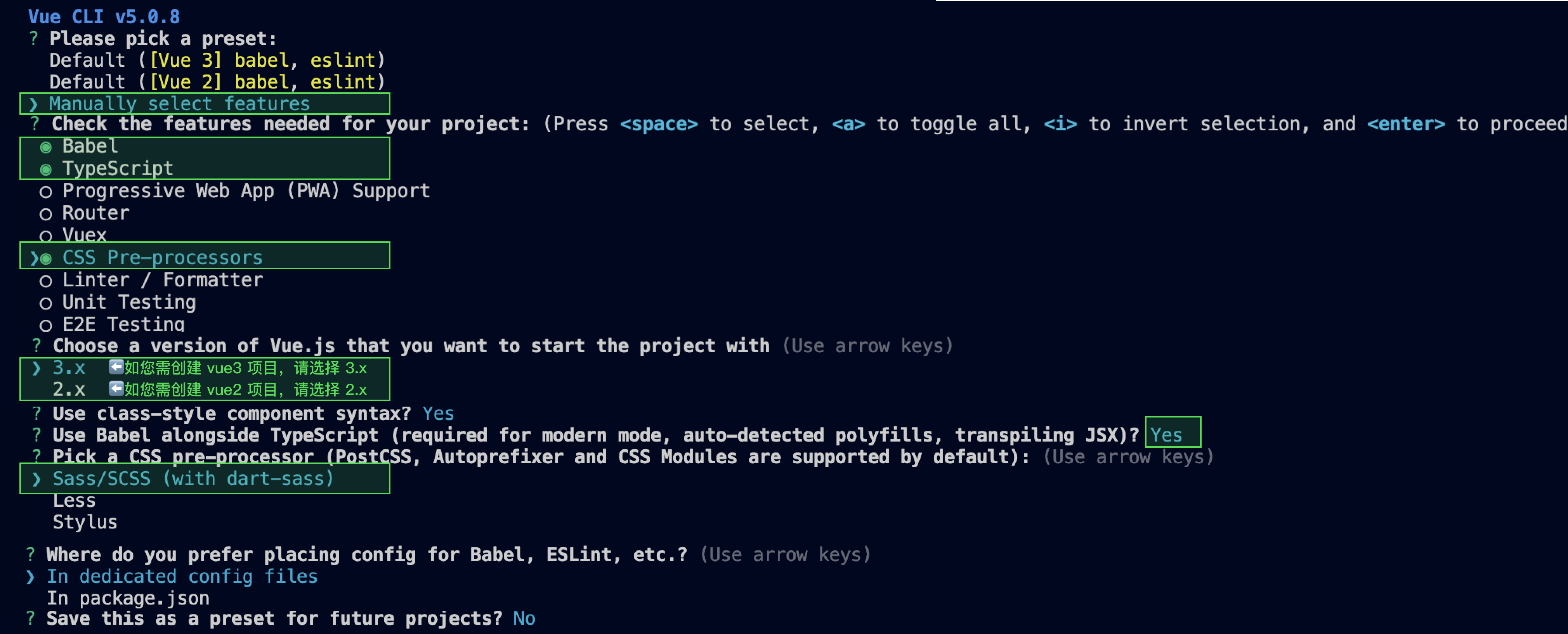 使用 vue-cli 方式创建项目, 配置 Vue2 / Vue3 + TypeScript + sass。
