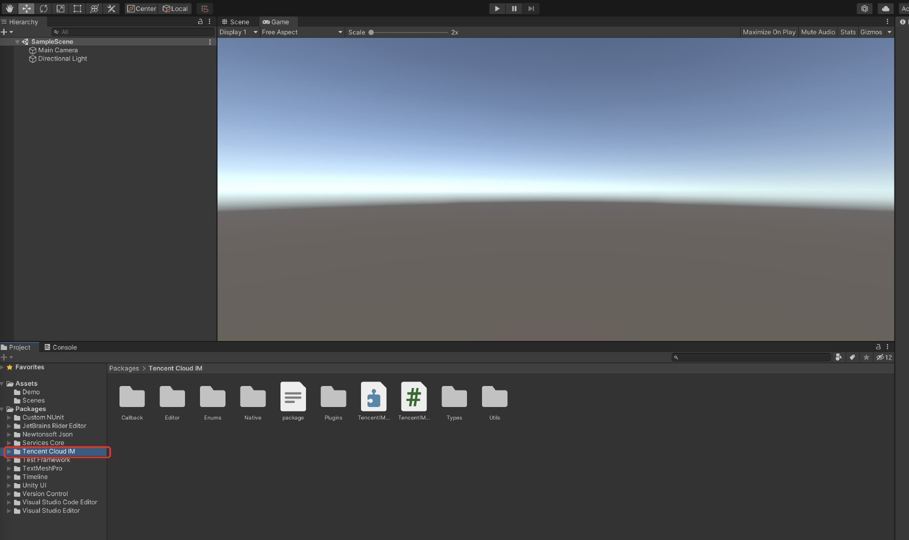 4. 加载依赖,在 Unity Editor 中打开项目,等待依赖加载完毕,确认Tencent Cloud IM 已经加载完成。