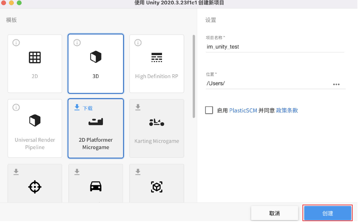 1. 通过 Unity,创建一个 Unity 项目,并记住项目所在的位置。
