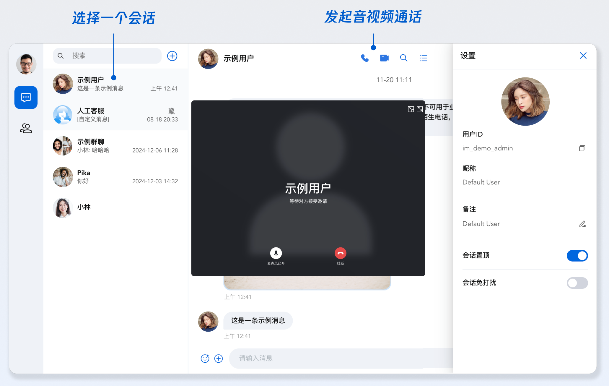 6. ChatSetting 提供单聊和群聊的管理组件。