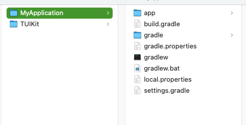 // 引入内部组件通信模块 (必要模块)include ':tuicore'project(':tuicore').projectDir = new File(settingsDir, '../TUIKit/TUICore/tuicore')// 引入 IM 组件公共模块(必要模块)include ':timcommon'project(':timcommon').projectDir = new File(settingsDir, '../TUIKit/TIMCommon/timcommon')// 引入聊天功能模块 (基础功能模块)include ':tuichat'project(':tuichat').projectDir = new File(settingsDir, '../TUIKit/TUIChat/tuichat')