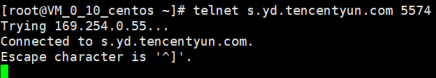 telnet s.yd.tencentyun.com 5574 命令,排查主机安全域名是否可以访问。2. 正常情况下:返回如下图所示结果。