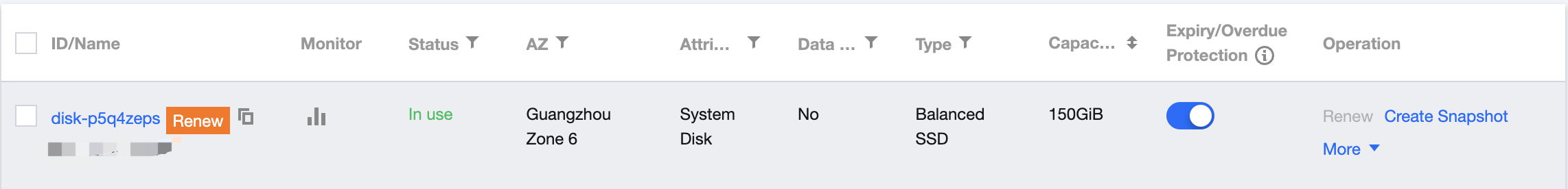 Cloud Disk Expiration/Overdue Payment Protection: After enabling this feature, if your cloud disk is repossessed by the system due to expiration or overdue payment, the system will automatically create a snapshot to protect your data.