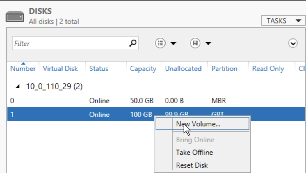 8. 初始化后,1由未知分区变为 GPT,右键单击1所在行,在菜单列表中选择新建卷。