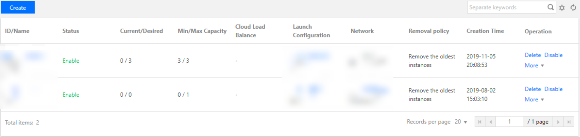 查看伸缩组列表