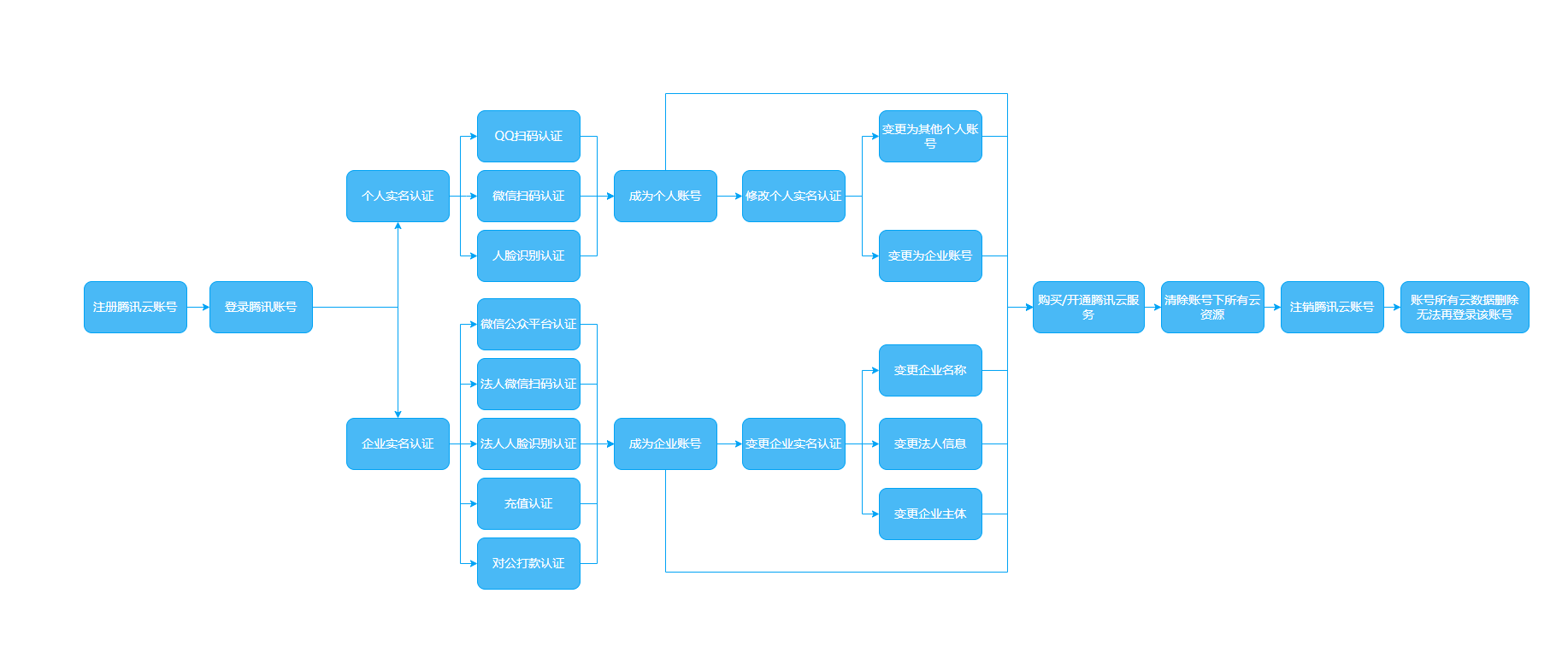本篇介绍腾讯云账号在腾讯云账号中心的整个生命历程,包括:注册账号、账号实名认证、账号注销等,您需要进入