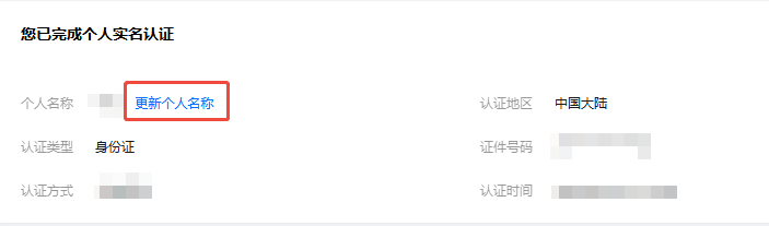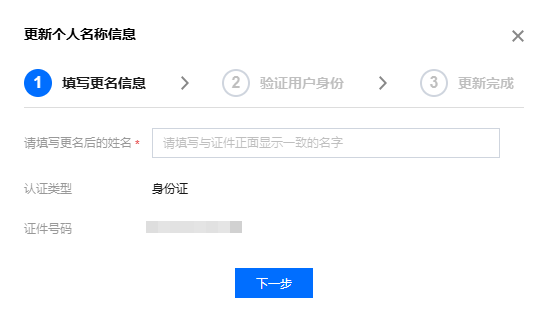 本文指导您如何为已完成个人实名认证的腾讯云账号更新姓名(身份证号码不变)。