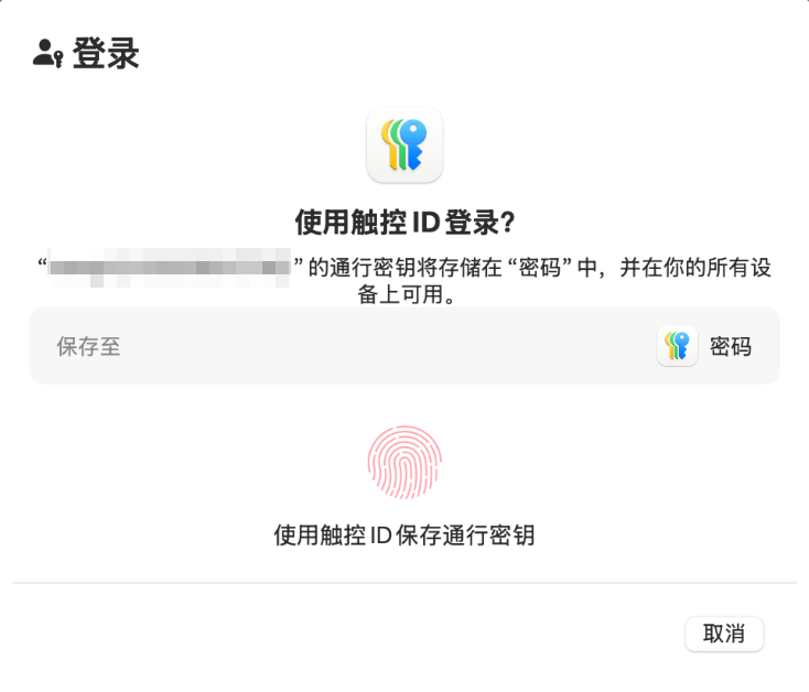 4. 身份验证完成后,请根据页面提示,按需选择保存通行密钥的位置,并创建密钥。