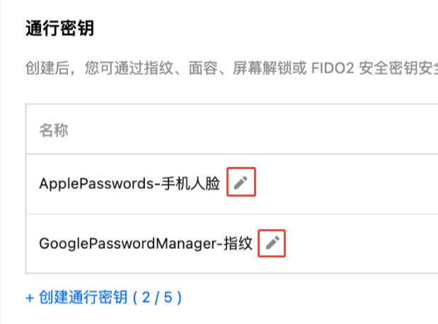 同一账号下的通行密钥名称不可重复,以便您区分不同设备。
