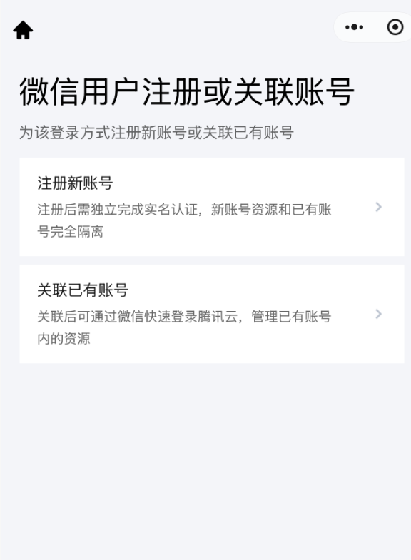 4. 打开腾讯云企业消息,根据指引进入小程序,选择关联新账号后即可完成注册。