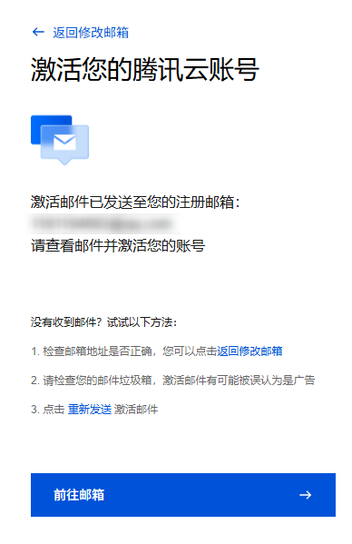 使用邮箱注册腾讯云,方便企业客户维护账号。