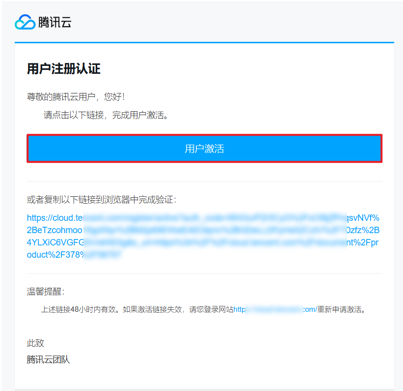 4. 登录邮箱,打开收到的验证邮件,单击用户激活