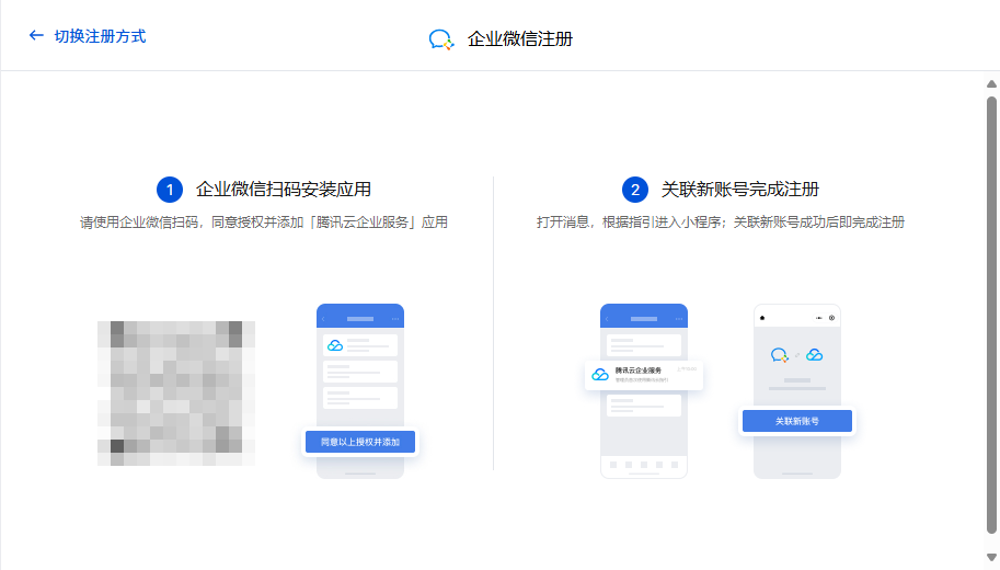 使用企业微信注册腾讯云账号成功后,就可以使用企业微信扫码登录腾讯云账号。