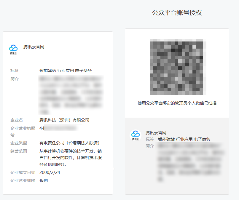 2. 打开企业微信扫一扫,扫描页面二维码,授权添加腾讯云企业服务