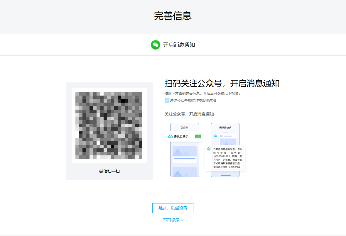 打开微信扫一扫,扫描页面的二维码,关联腾讯云账号。