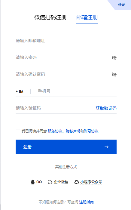 腾讯云注册方式包括以下几种(可选任一方式进行注册):