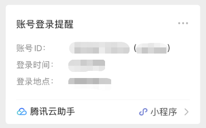 微信收到来自腾讯云公众号发送的登录时间间隔超过一个月的消息提醒: