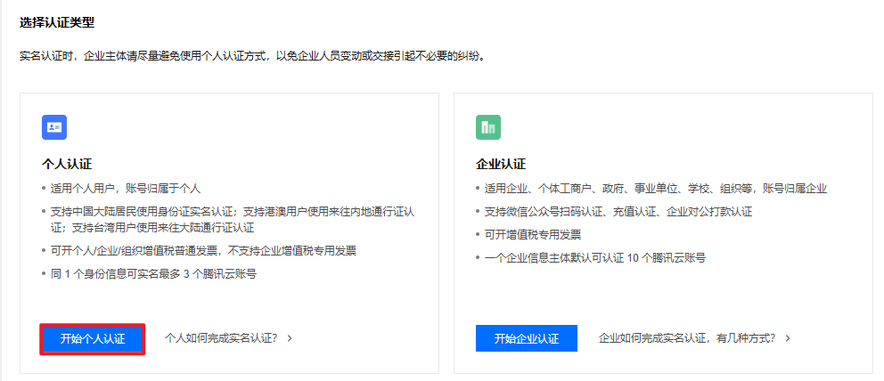 1. 登录腾讯云控制台,进入 实名认证 页面。