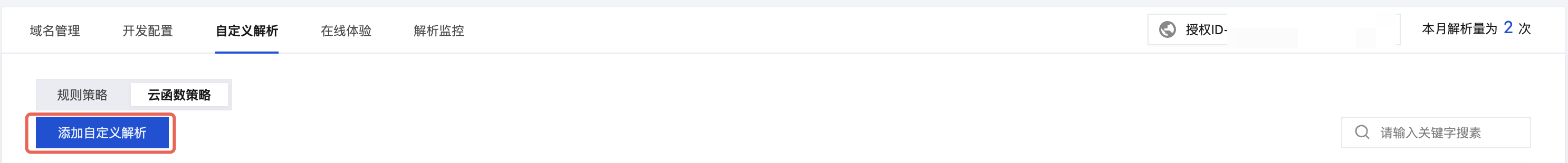 2. 选择云函数策略,单击添加自定义解析。如下图所示: