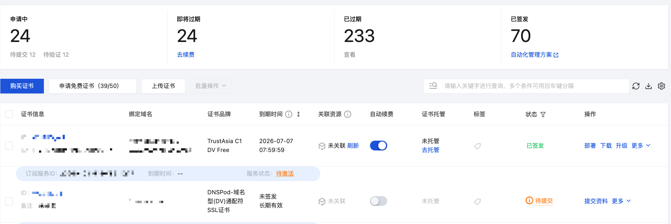 SSL 证书控制台 >