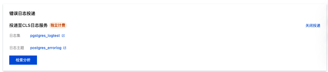 6. 成功开启错误日志投递后,您可在日志投递下看到错误日志投递状态为开启,单击日志主题名称,可跳转至 日志服务控制台 进行后续分析管理。