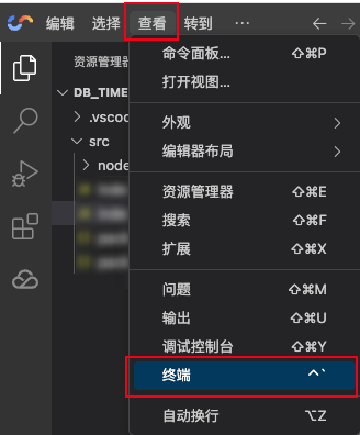连接云数据库 PostgreSQL,需要先安装 pg 依赖包。在编辑器中单击查看 > 终端,打开终端。