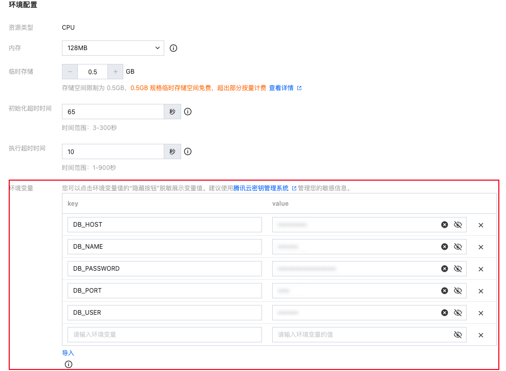 DB_PORT:连接使用的端口号。云数据库 PostgreSQL 默认使用5432 。