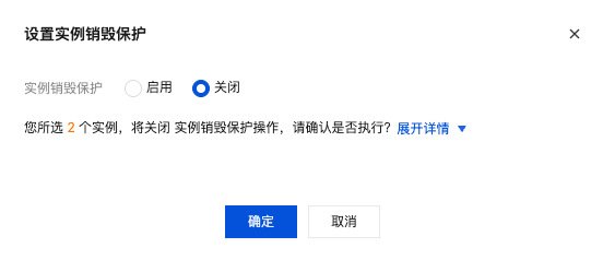 2. 您可根据实际需求,关闭单台或多台实例销毁保护: